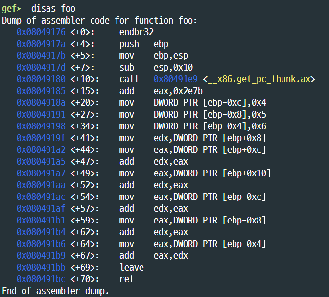 gdb로 까 보면 main은 다르지 않지만 foo부분이 조금 달라졌다