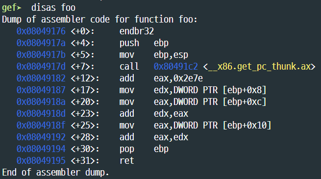 0x080491b5는 main에서 call foo 다음 명령의 주소, 즉 push eip를 통해 푸시된 값임을 알 수 있다