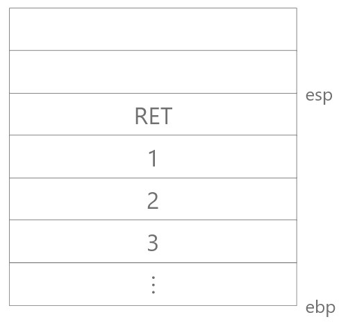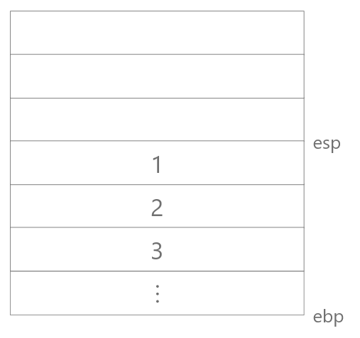 3, 2, 1 순서대로 인자를 스택에 푸시한 뒤,