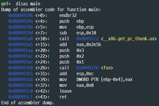 gdb로 까 보면 main은 다르지 않지만 foo부분이 조금 달라졌다